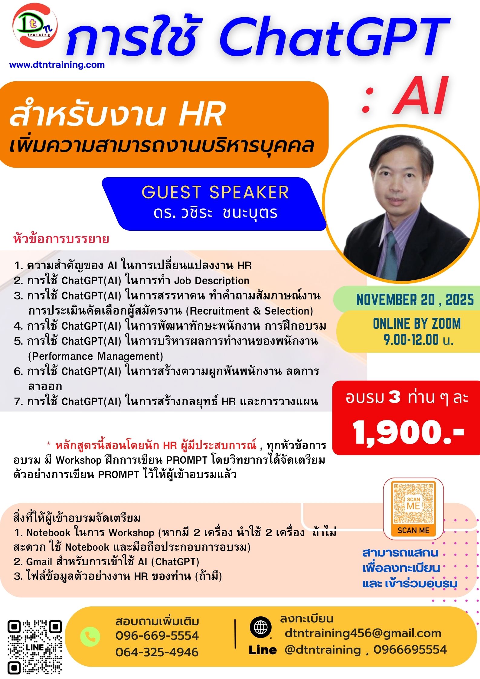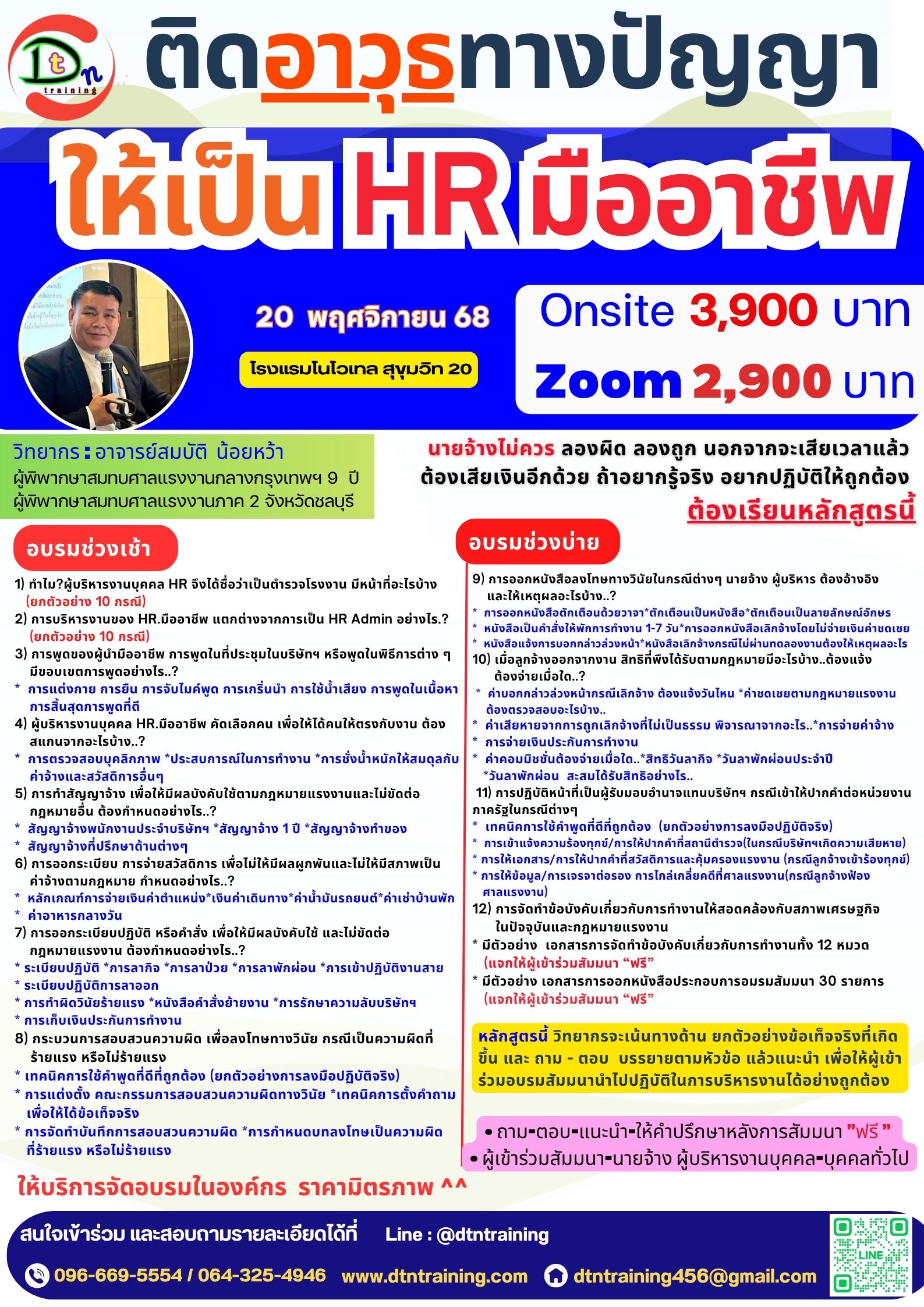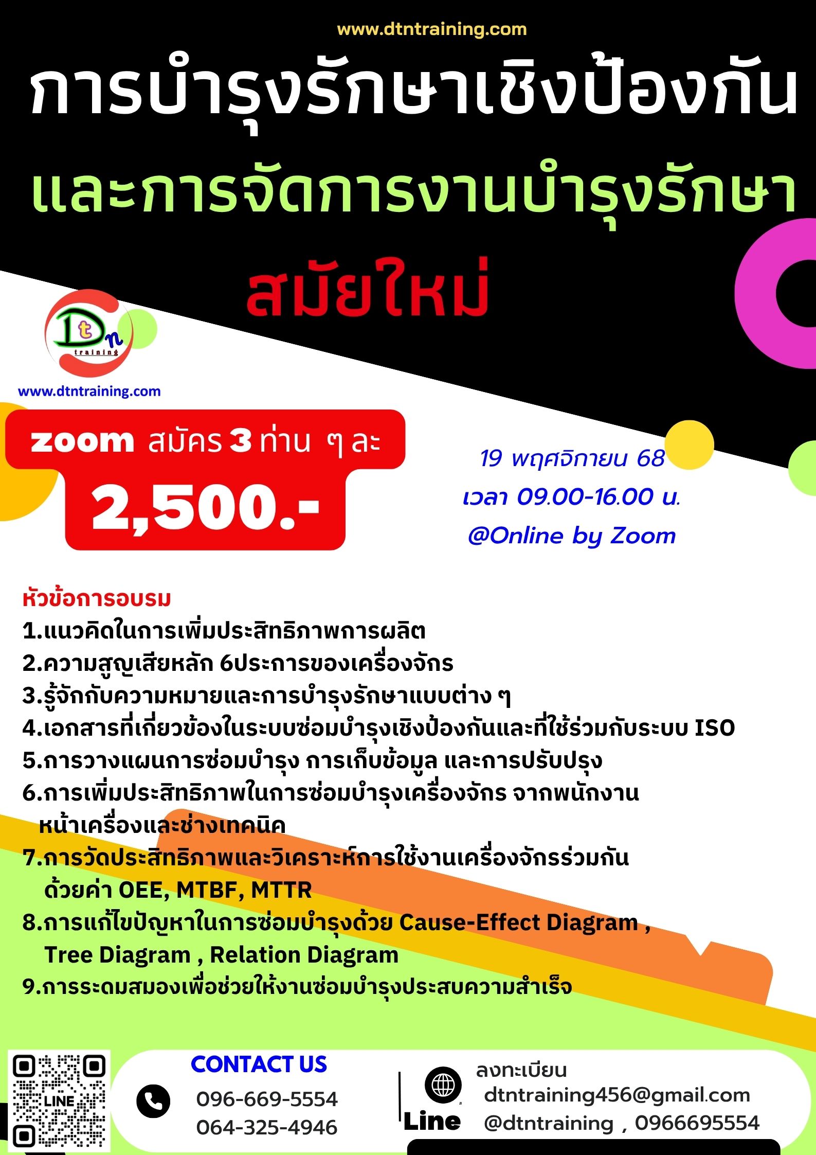 วันที่ 27-28 พฤศจิกายน 2568 เวลา 09.00 -16.00 เวลา 9.00 น. – 16.00 น. (อบรม 2 วัน)