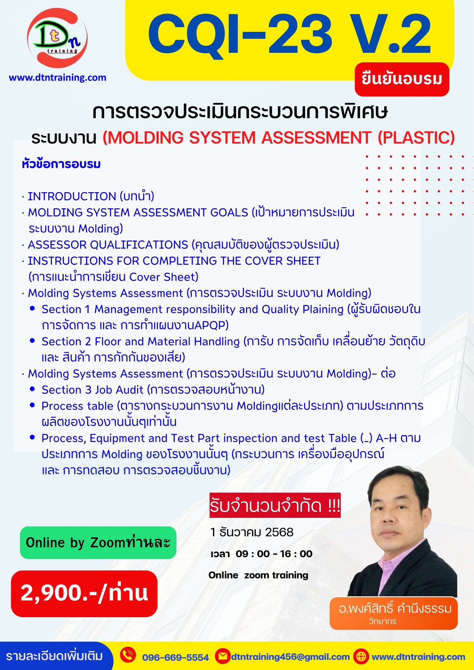 หลักสูตรนี้รวมถึงเทคนิคการจัดทำแผนควบคุม (Control Plan) ทั้งช่วงทดลองผลิต (Trial Run) และผลิตจริง (Mass production)ตามข้อกำหนด 8.5.1.1 โดยเน้นให้ทีมงานได้ทดลองเขียนกับกระบวนการผลิตจริงขององค์กร