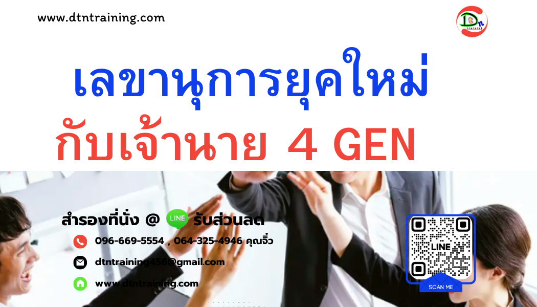 2. เพื่อให้ผู้เข้าอบรมได้พัฒนาทักษะ มีวิธีการทำงานที่สร้างสรรค์กับเจ้านาย 4 GEN อย่างมีรูปแบบและตรงกับสไตล์ของการทำงานร่วมกันด้วยมืออาชีพ