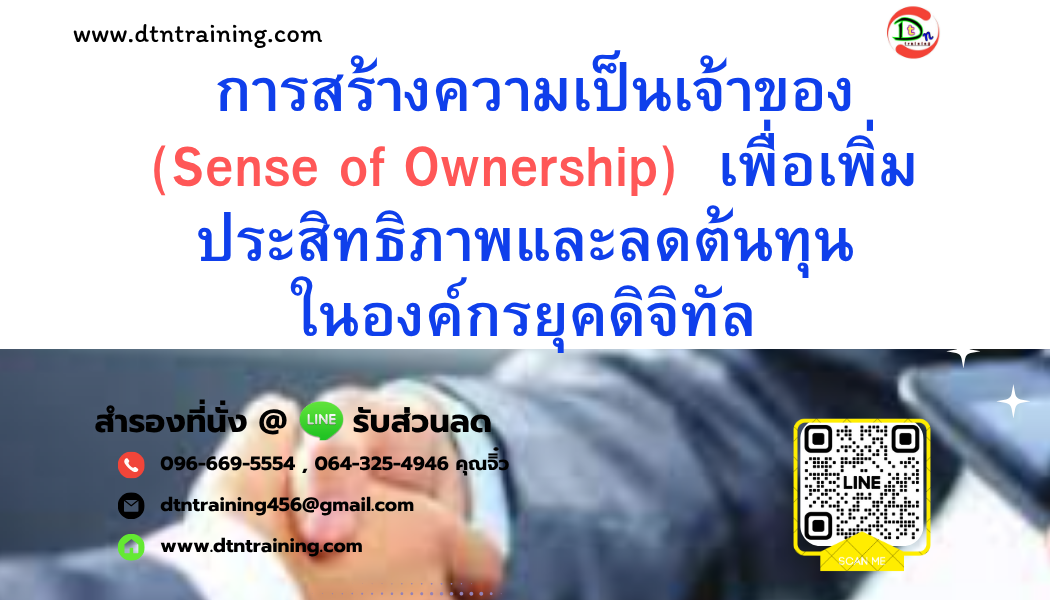 หลักสูตร การสร้างความเป็นเจ้าของ (Sense of Ownership) เพื่อเพิ่มประสิทธิภาพและลดต้นทุนในองค์กรยุคดิจิทัล
