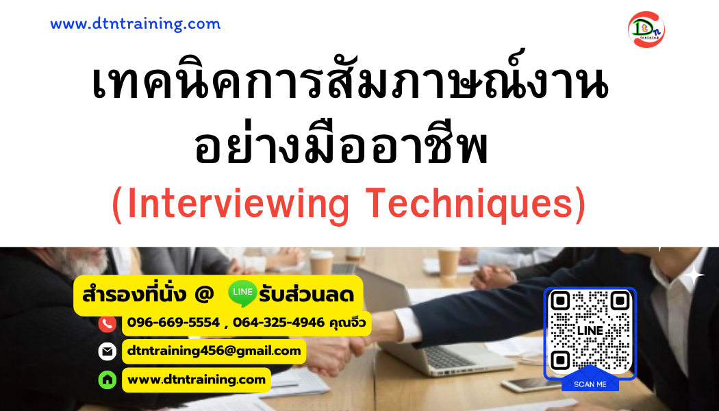 หลักสูตร เทคนิคการสัมภาษณ์งานอย่างมืออาชีพ (Interviewing Techniques) นี้จะให้ผู้เข้าอบรมได้เรียนรู้พื้นฐาน และทักษะการสัมภาษณ์ให้มีแนวทางในการสัมภาษณ์ผู้สมัครงาน เพื่อรวบรวม และเจาะลึกข้อมูลในอดีตของผู้สมัคร และนำมาเปรียบเทียบกับผู้สมัครงานคนอื่น ๆ ในตำแหน่งเดียวกันที่สมัครทั้งหมด เพื่อค้นหาบุคคลที่เหมาะสมที่สุดกับตำแหน่งงาน หลักสูตรฯ นี้จึงเน้นให้ผู้เข้าอบรมสามารถเรียนรู้ และเข้าใจเทคนิคการสัมภาษณ์งานที่ถูกวิธี มีหลักและขั้นตอนในการเจาะลึกเพื่อค้นหาพฤติกรรมหลักของพนักงาน เพื่อช่วยกลั่นกรองคนที่มีความสามารถ มีสมรรถนะในการทำงานตามที่องค์กรต้องการอย่างมากที่สุด